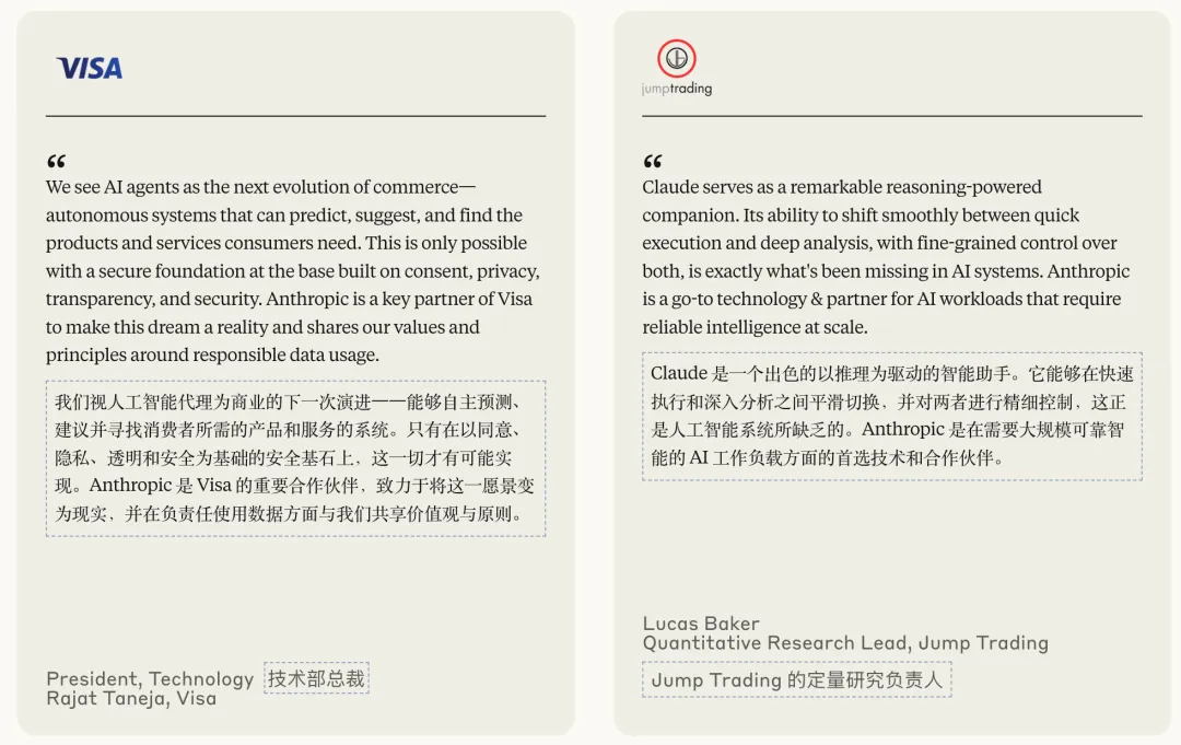 熟悉的VISA也說(shuō)Claude是他們的主要合作伙伴。