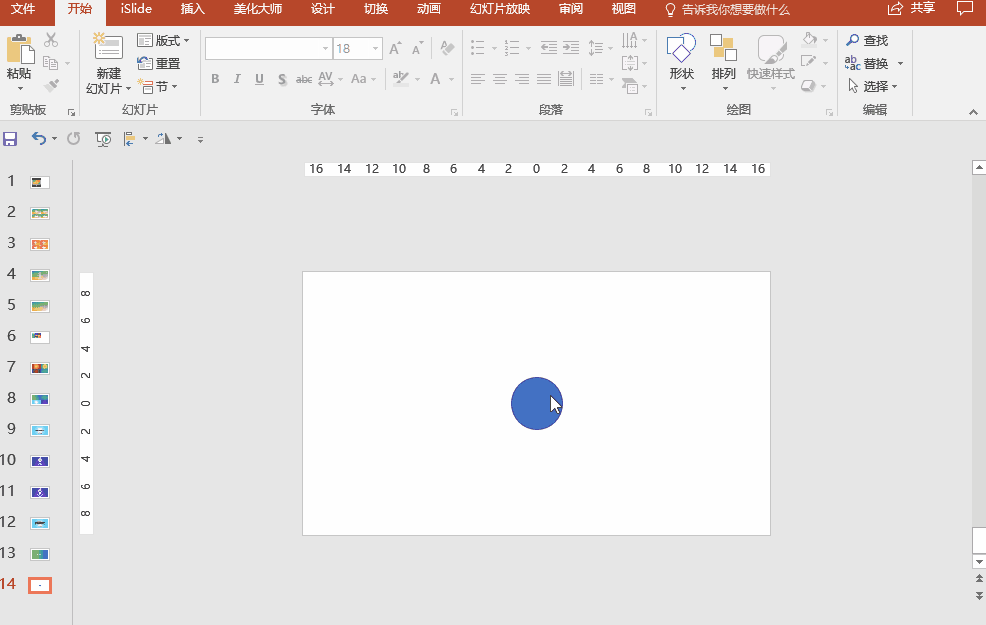 ? 同時選中兩個圓形,在菜單欄依次點擊【iSlide】-【補間動畫】。