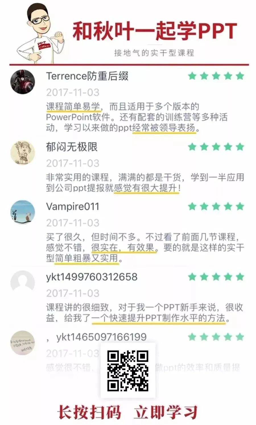 所以,你需要「和秋葉一起學(xué)PPT」這門課,幫你快速系統(tǒng)提升 PPT 技能,早日達到高手境界!