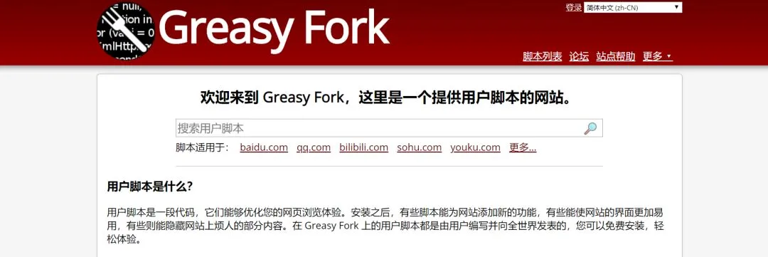 安裝了油猴腳本之后,我們就可以安裝三頓前面提到的這些小工具了,用到的是一個(gè)叫做Greasyfork的網(wǎng)站。