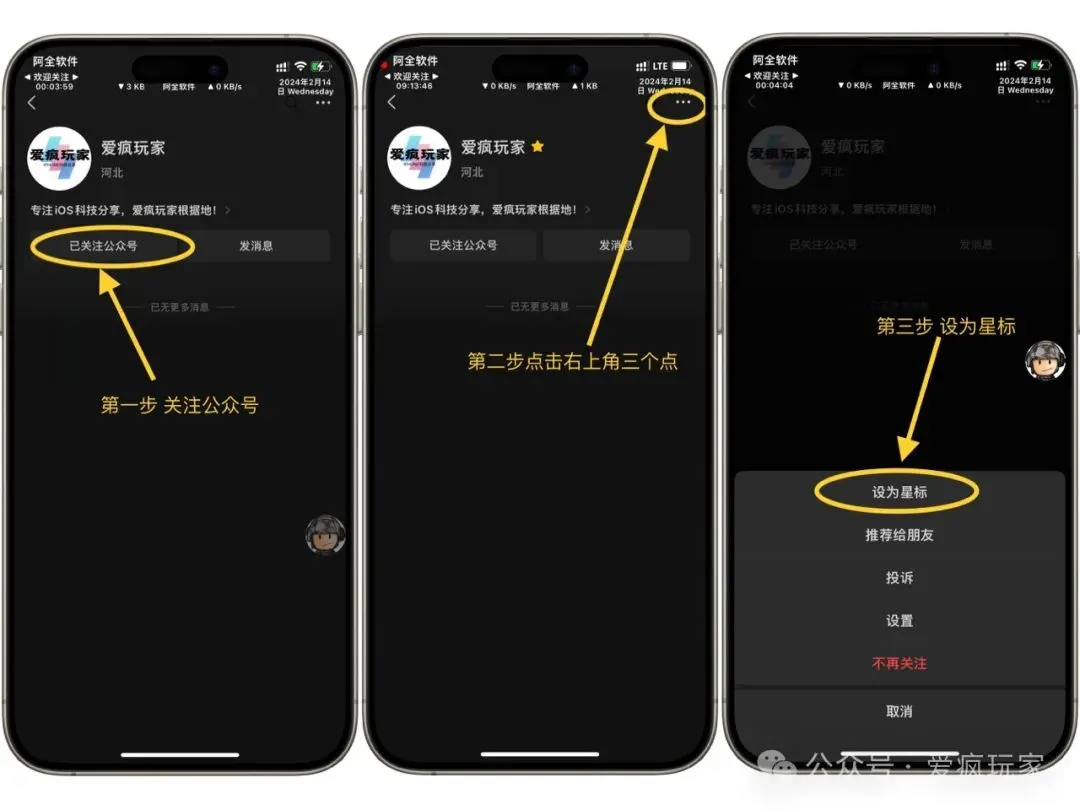 很多神器分享過(guò)后特別容易失效,每次等到大家想起來(lái)的時(shí)候已經(jīng)沒(méi)了,所以為了可以第一時(shí)間看到文章,可以按照下圖所示操作,關(guān)注微信公眾號(hào),設(shè)為星標(biāo),第一時(shí)間收取文章更新,以免錯(cuò)過(guò)精彩內(nèi)容。