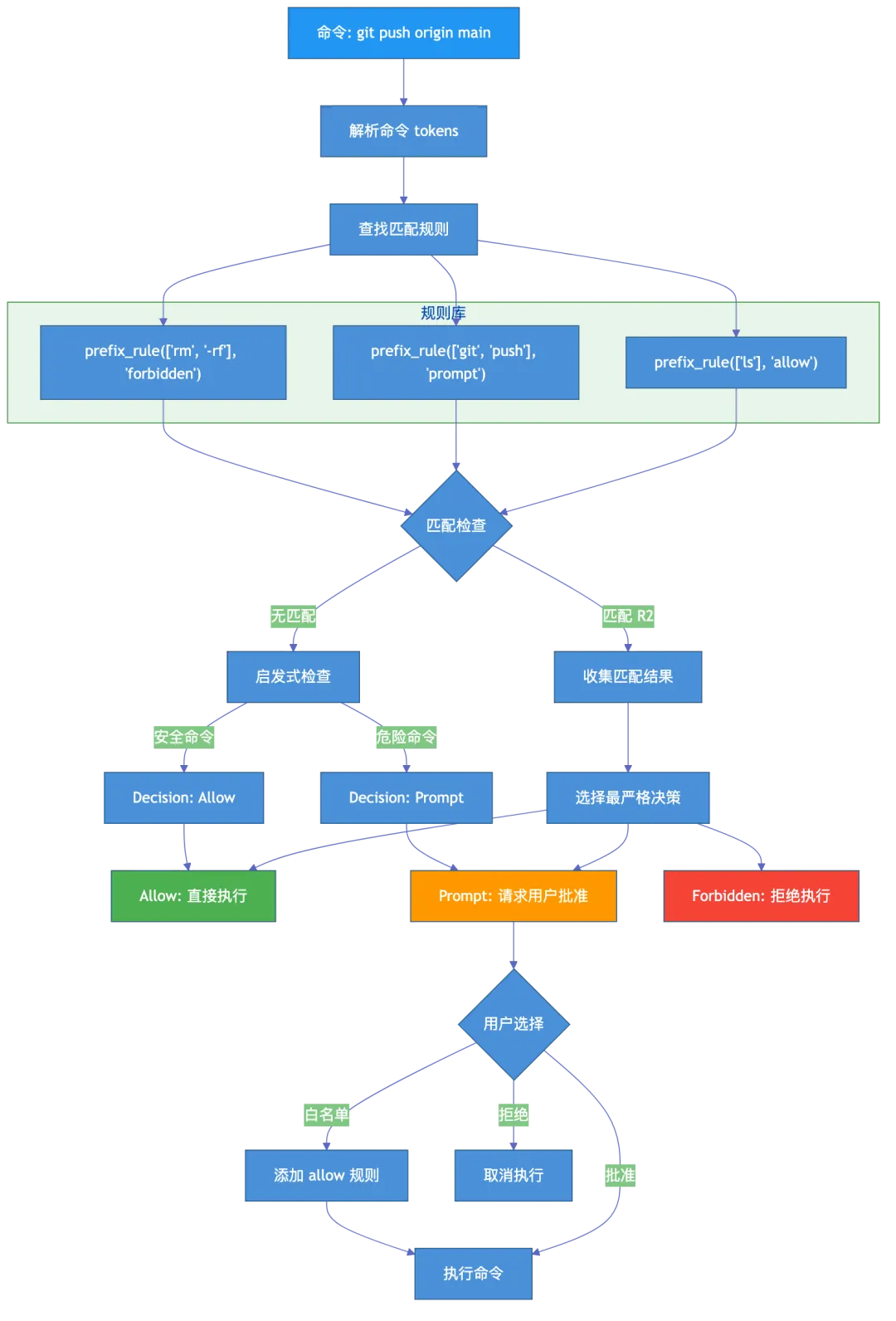 Codex 使用基于規(guī)則的執(zhí)行策略系統(tǒng):