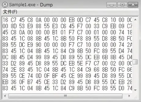 接下來(lái),我們把剛才的 EXE 文件的內(nèi)容 Dump 一下。?Dump是指 把文件的內(nèi)容,每個(gè)字節(jié)用 2 位十六進(jìn)制數(shù)來(lái)表示的方式。