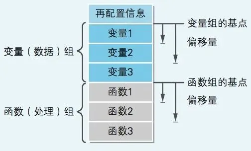 EXE 文件中給變量及函數(shù)分配 了虛擬的內(nèi)存地址。在程序運(yùn)行時(shí),虛擬的內(nèi)存地址會(huì)轉(zhuǎn)換成實(shí)際的 內(nèi)存地址。鏈接器會(huì)在 EXE 文件的開(kāi)頭,追加轉(zhuǎn)換內(nèi)存地址所需的必 要信息。這個(gè)信息稱為再配置信息。EXE 文件的再配置信息,就成為了變量和函數(shù)的相對(duì)地址。相對(duì) 地址表示的是相對(duì)于基點(diǎn)地址的偏移量,也就是相對(duì)距離。在源代碼中,雖然變量及函數(shù)是在 不同位置分散記述的,但在鏈接后的 EXE 文件中,變量及函數(shù)就會(huì)變 成一個(gè)連續(xù)排列的組。這樣一來(lái),各變量的內(nèi)存地址就可以用相對(duì)于 變量組起始位置這一基點(diǎn)的偏移量來(lái)表示,同樣,各函數(shù)的內(nèi)存地址 也可以用相對(duì)于函數(shù)組起始位置這一基點(diǎn)的偏移量來(lái)表示。