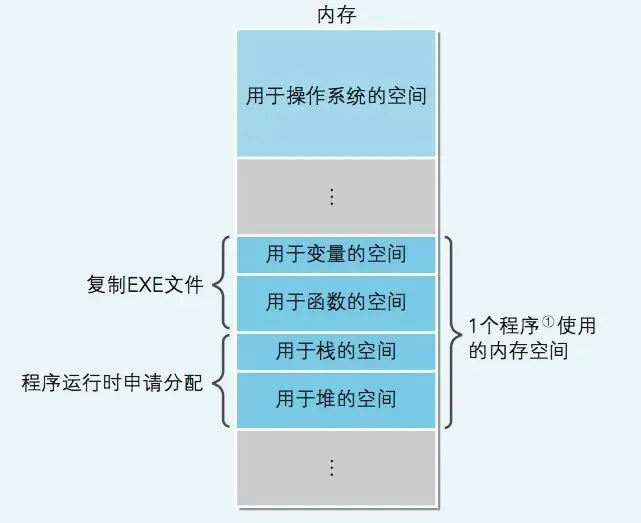 EXE 文件中并不存在棧及堆的組。棧和堆需要的內(nèi)存空間是在 EXE 文件加載到內(nèi)存后開(kāi)始運(yùn)行時(shí)得到分配的。