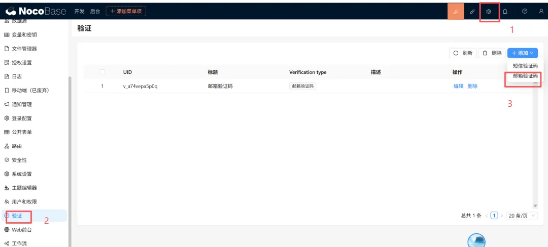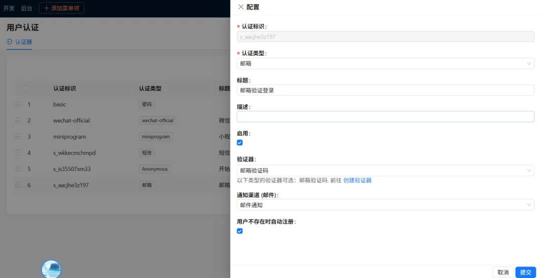 后臺(tái)配置->驗(yàn)證:添加郵箱驗(yàn)證碼